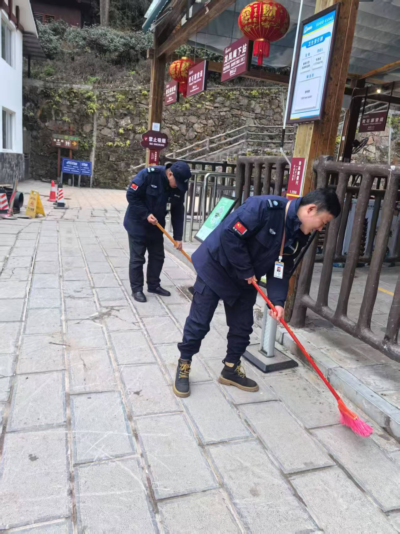 景区内各个站场的清洁工作同样开展得如火如荼。由于客运车辆频繁往来,进站游客众多,站场地面和排队通道极易堆积垃圾。面对这一情况,员工们手持扫帚、拖把等清洁工具,认真清扫地面的垃圾与灰尘,同时仔细擦拭指示牌、栏杆等设施。他们的辛勤付出,为游客营造出了一个整洁、舒适的候车环境。